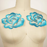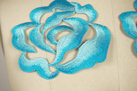 Aqua and blue floral Embroidery rose applique. Because of the dual color, the patch has a 3 dimensional effect.