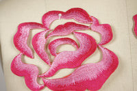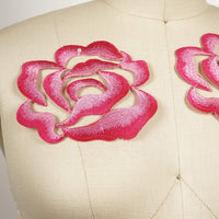 Red and Pink Embroidery rose applique. Because of the dual color, the patch has a 3 dimensional effect.