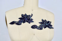 1 Beads and Sequins Elegant Black and Purple Flower Applique/Patch