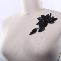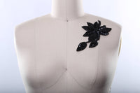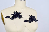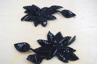 1 Beads and Sequins Elegant Black Flower Applique/Patch