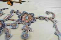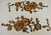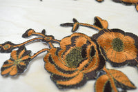 2 Brown & Rust Embroidery Flower Patches/Applique with Antique Gold Detailing