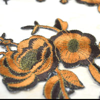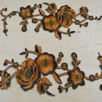 This patch features flowers with leaves and stems in an elegant and modern shape. The flower is embroidered with orange and brown thread, and is accented with antique gold embroidery. Iron on backing allows you to easily apply heat to attach the item to your fabric.