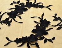 2 Eleglant Black Embroidery Flower Patch/ Applique