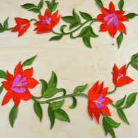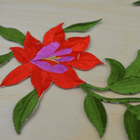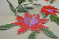 2 Red and Purple and Green Lily Embroidered Flower Patches/ Applique