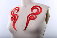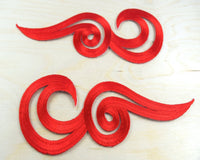 Quantity: Two piece applique embroidered with vibrant red thread. Please note: You will receive two appliques per order in opposite sides.