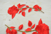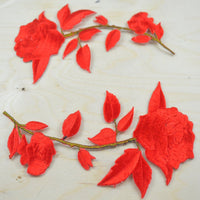 2 Brilliantly Vibrant Red Embroidered Roses Patches/ Applique