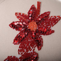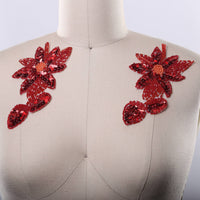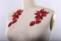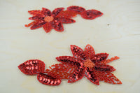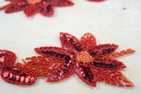 2 Red Beaded and Sequined Flower Patches/Appliques
