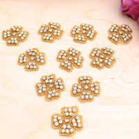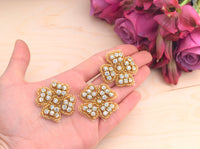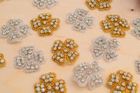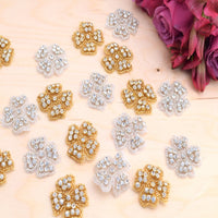 6 Pieces 1.5" Gold or Silver Quattro Petal Rhinestone Flower Patch/Applique