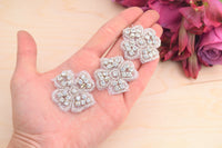 6 pieces four petal flowers with rhinestone and beading with iron on Backing.