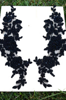 Jaw droppingly , Exceptionally breathtaking stunning symmetrical applique .Heavily beaded, Set on netting with Floral design.