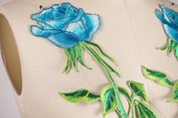 1 Blue Rose Embroidery Flower Iron on Applique/Patch