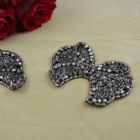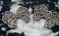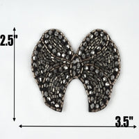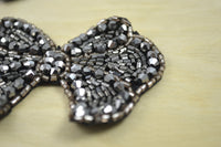 1 Sparkling Black and Grey Crystal Bow Beaded Patch Applique