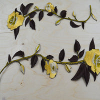 2 Brown and Mustard Long Stem Rose Flower Patch/Applique