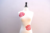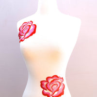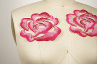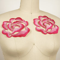 Candy Red and Taffy Pink Embroidery rose applique. Because of the dual color, the patch has a 3dimensional effect.