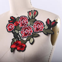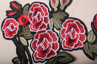 Red, black and green Embroidery Iron on rose applique. Because of the dual color, the patch has a 3 dimensional effect.
