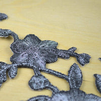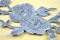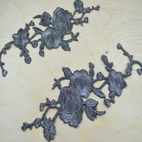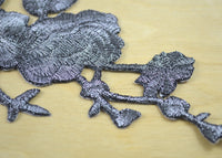 2 Gray Gunmetal Flower Edgy Gunmetal Embroidery Flower Patch Applique