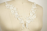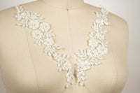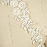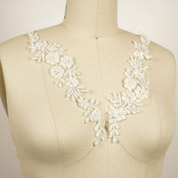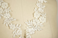 Ivory and Silver Heavily Beaded Flowers and Leaves Bridal Applique