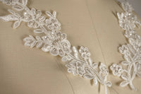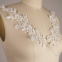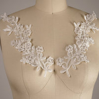 1 Pair Embellished Ivory or White Beaded Bridal Lace Applique