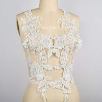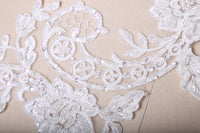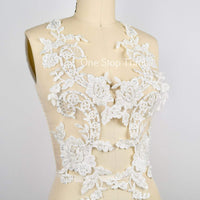1 Pair Ivory or white Extra Long Beaded Lace Applique