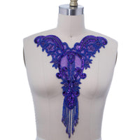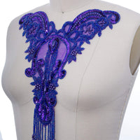 1 Purple Beading and Sequining with Dangling Bead Fringe Patch Applique