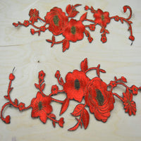 1 Pair Dark Red and Antique Gold Embroidery Flower Applique Patch