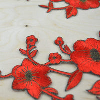 This patch features flowers with leafs and stems in an elegant and modern shape. The flower is embroidered with a deep red embroidery thread and accented with an antique gold details. Iron on backing allows you to easily apply heat to attach the item to your fabric.