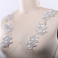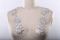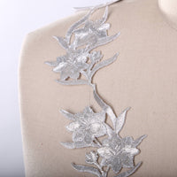 This patch features flowers with leafs and stems in an elegant and modern shape. The flower is embroidered with fine metallic silver thread. Iron backing allows you to easily apply heat to attach the item to your fabric.