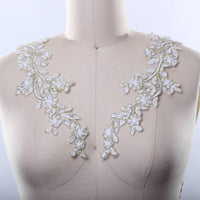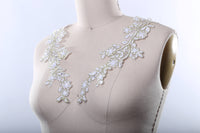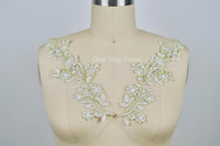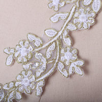 Quaint Floras White and Gold Beads and Sequins Applique