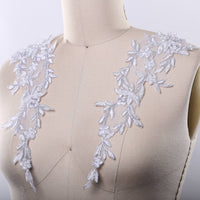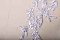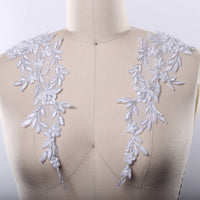 1 Pair White and Silver or Gray and Silver lace Applique with Elongated Leafs.