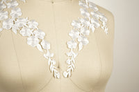 1 Pair White Embroidery Flower Iron on Patches/ Applique