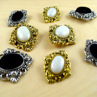 Silver with Velvet and Antique Gold with Plastic Stone and Button Shank!