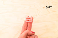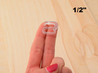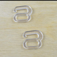 Lightweight clear plastic hooks that can serve as the closures for the back of swimsuits.