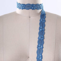7/8" Dark Teal Blue Stretch Floral Elastic Lace Trim