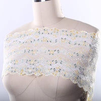 1 Yard 7" Lemony Flowers with Varying Green Colors Stretch Lace Trim