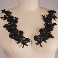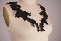 Elegant and formal black applique with beautiful embroidery work in floral design.