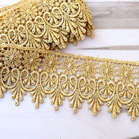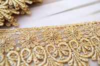 1 Yard 3" Raven Metallic Gold Floral Venice Lace Trim
