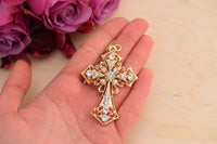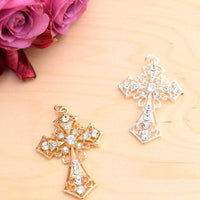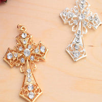 1 Diamond Gold or Silver Rhinestone Cross Charm