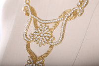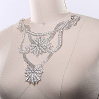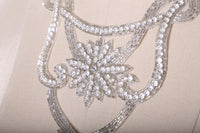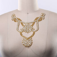 1 Gold or Silver Rhinestone Iron on Collar Neckline Applique with Flower Center