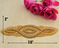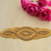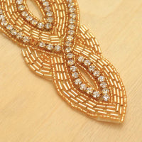 Long and Graceful Gold Rhinestone Applique/Patch with Ravishing Beads and Muted Rhinestones