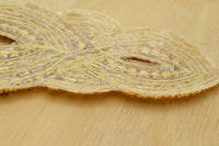 The beads and rhinestones are intricately placed on a iron-on material for easy and convenient application.