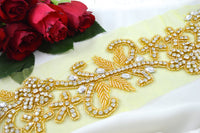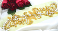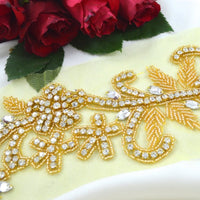 Handmade Gold Rhinestone and Beaded Long Flower Branch Applique