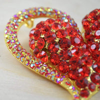 1 Bold Red and Gold Rhinestone Heart Broach with an Iridescent Arch