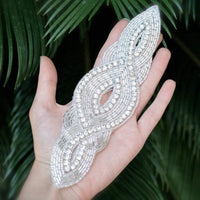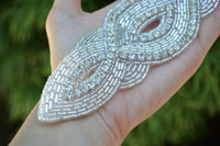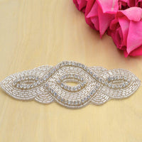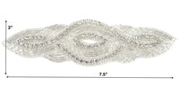 1 Silver Rhinestone and Beaded Elongated Almond Shape Iron on Applique/Patch