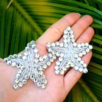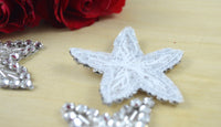 This star-shaped crystal applique is set on a mesh banding and is covered with silver beading and round flat back
