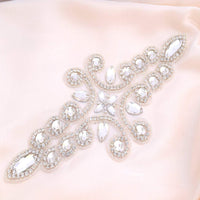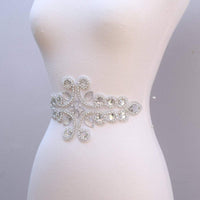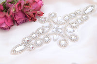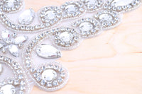 1 Silver Rhinestone Double Swirl Bridal Belt Sash Patch Applique