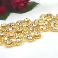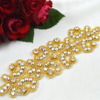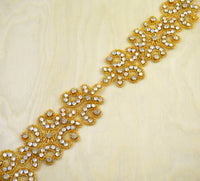 Gold Round Rhinestone and Small Gold Beading Contemporary Applique/Patch/Trim