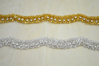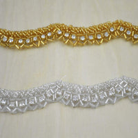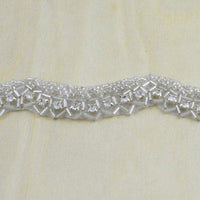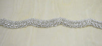 1 Yard 3/4" Silver Scalloped Beaded and Rhinestone Iron on Trim