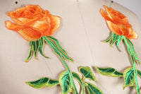 1 Tangerine Orange Rose Flower with Neon Metallic Green Workings Patch Applique