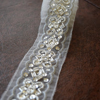 1 Yard 2" Sequined Sheer Organza and Silver Beaded Lace Trim
